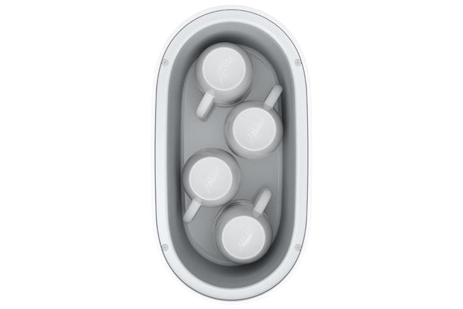 Με διαστάσεις μόλις 13,9 x 19,9 x 25,8 cm, ο θερμαντήρας φλιτζανιών S της Jura χωράει παντού. Το μόνο που χρειάζεται είναι ένα πάτημα στο διακόπτη λειτουργίας και αυτή η απλή και κομψή προσθήκη σε κάθε αυτόματη μηχανή Espresso ξεκινά την λειτουργία της.