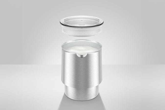 Με διάμετρο 13 εκ. και ύψος 21 εκ., η Αυτόματη συσκευή για ζεστό & κρύο αφρόγαλα είναι συμπαγής και εξοικονομεί χώρο. Εναρμονίζεται αρμονικά με κάθε κουζίνα και συμπληρώνει με στυλ τις μηχανές Γνήσιου Καφέ της JURA. Τα εύκολα στη φροντίδα υλικά, όπως το ανοξείδωτο ατσάλι, καθώς και οι στρογγυλεμένες γραμμές, κάνουν το δοχείο εύκολο στο καθάρισμα.