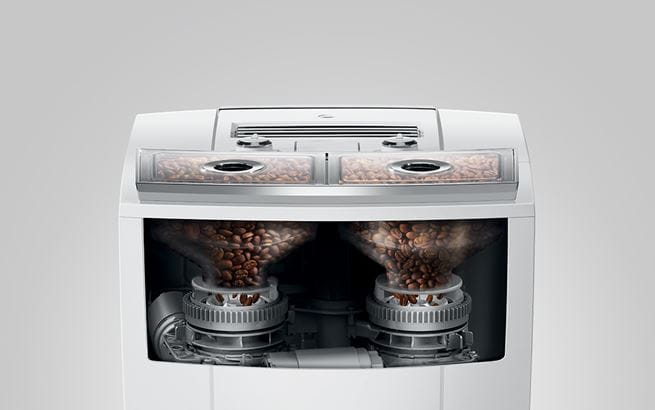 Η J8 twin μπορεί να ετοιμάσει 31 απολαυστικές σπεσιαλιτέ. Με δύο κωνικούς μύλους, η μηχανή διαθέτει μέγιστη ευελιξία όσον αφορά τη δημιουργία γευστικών ροφημάτων. Κάθε καφές φτιάχνεται σύμφωνα με το προσωπικό σας γούστο, πάντα φρεσκοαλεσμένος με το αγαπημένο σας μείγμα καφέ, δυνατό ή ήπιο, κανονικό ή ντεκαφεϊνέ. Εν ολίγοις, διαθέτει τα πλεονεκτήματα δύο μηχανών καφέ σε μία συμπαγή συσκευή. Και όμως, αυτό το ταλαντούχο πολυεργαλείο μπορεί να κάνει ακόμα περισσότερα. Είναι δυνατό να αρωματίσετε το αφρόγαλα για να του δώσετε μια διακριτική γλυκιά νότα και να ανοίξετε έτσι έναν εντελώς νέο κόσμο γεύσης. Δεν υπάρχουν όρια στο τι μπορεί να δημιουργηθεί, από τον κλασικό, απλό εσπρέσο μέχρι τον κομψό Sweet Latte.