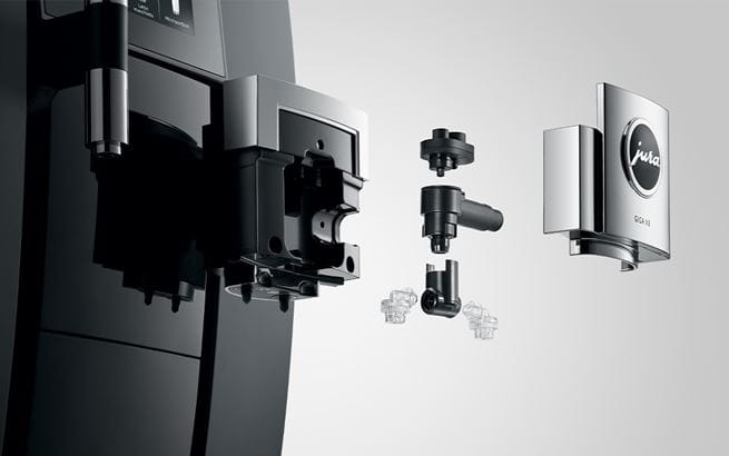 Η GIGA X8c διαθέτει ένα εξελιγμένο διπλό στόμιο με ρυθμιζόμενο ύψος, το οποίο τελειοποιεί τα μοντέρνα coffee specialities γαρνίροντάς τα με γάλα ή αφρόγαλα χάρη στην τεχνολογία φίνου αφρογάλακτος JURA. Η ταχεία λειτουργία εξασφαλίζει την παρασκευή των coffee specialities σε ελάχιστο χρόνο.